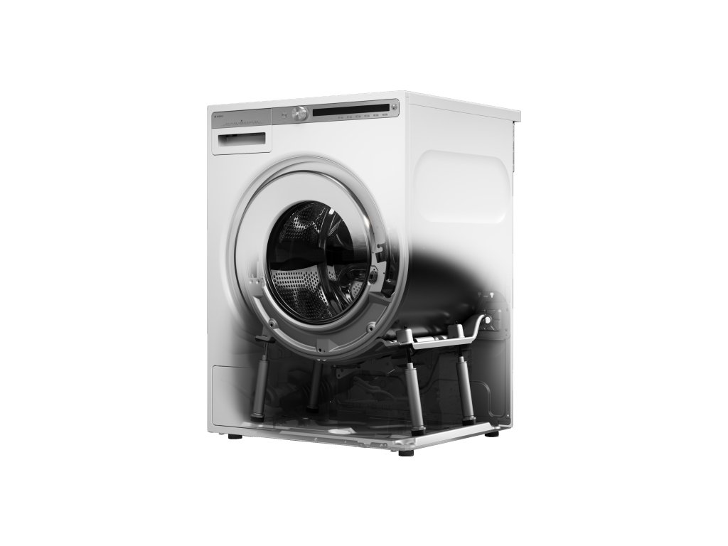 Zpevňujeme a stabilizujeme naše pračky robustním litinovým zadním štítem. Díky tomu jsou robustnější, mají tišší provoz a delší životnost.