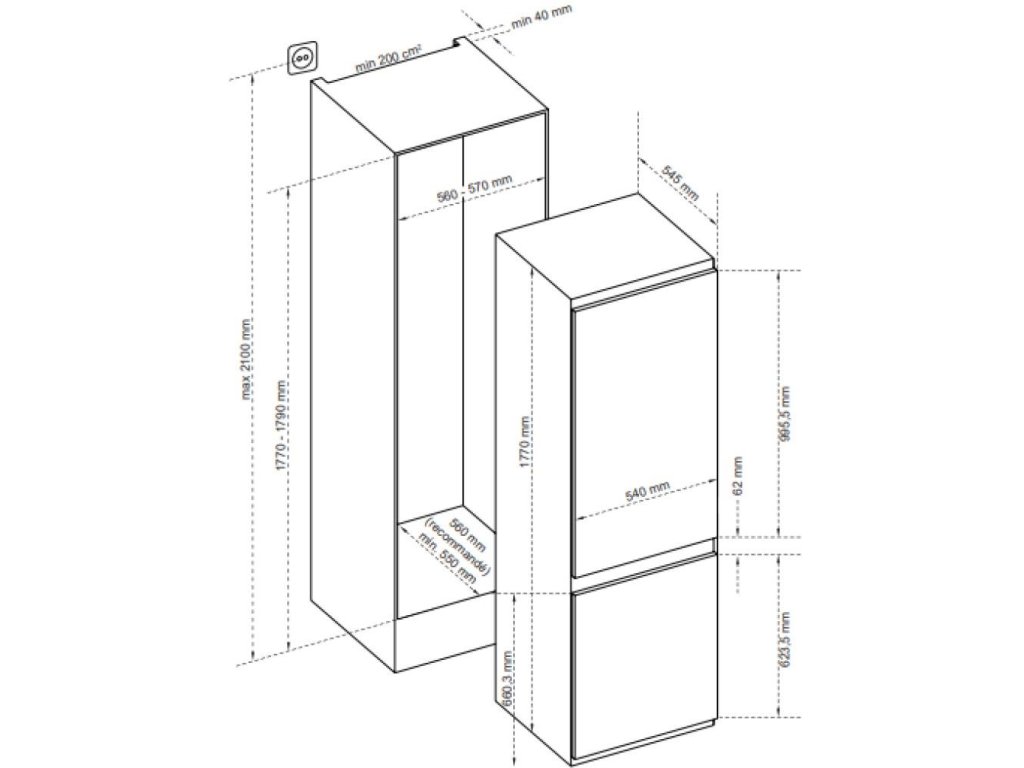 - Vestavná kombinovaná chladnička s mrazákem dole
