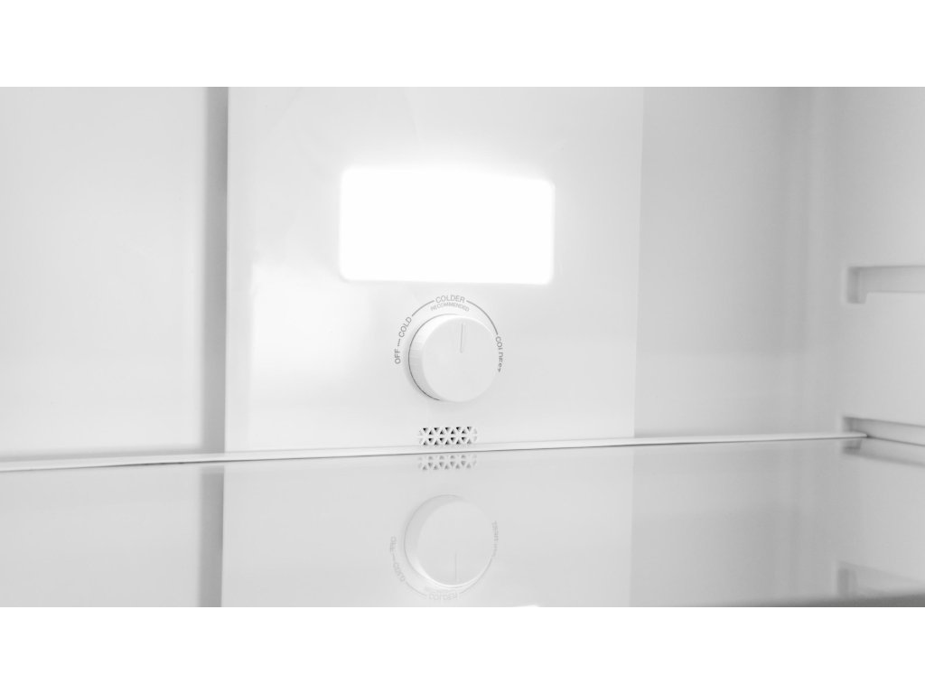 Chladicí část: nabízí čistý objem 210 litrů s technologií Total No Frost pro snadné a rychlé automatické odmrazování. Uvnitř najdete 3 nastavitelné a 1 pevnou polici z bezpečnostního skla, 3 dveřní přihrádky (2 standardní, 1 hlubokou), objemnou zásuvku na ovoce a zeleninu. Pro optimální osvětlení uvnitř je chladnička vybavena LED osvětlením.