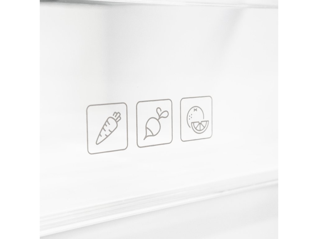 Chladicí část: nabízí čistý objem 210 litrů s technologií Total No Frost pro snadné a rychlé automatické odmrazování. Uvnitř najdete 3 nastavitelné a 1 pevnou polici z bezpečnostního skla, 3 dveřní přihrádky (2 standardní, 1 hlubokou), objemnou zásuvku na ovoce a zeleninu. Pro optimální osvětlení uvnitř je chladnička vybavena LED osvětlením.