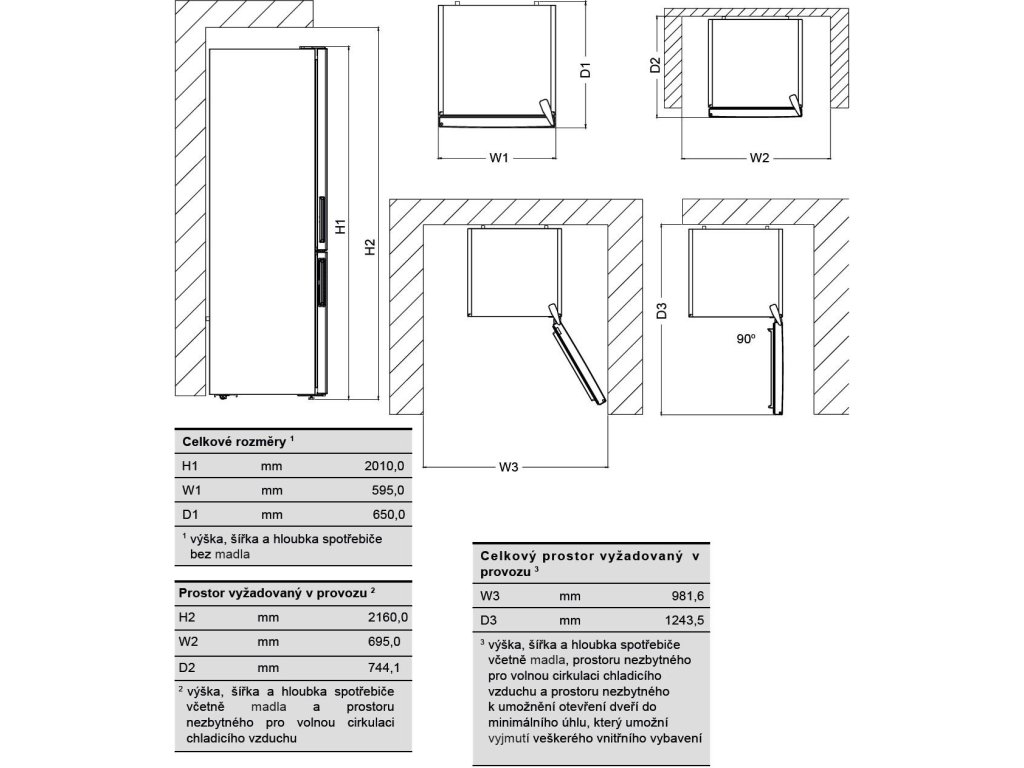 Díky rozměrům 201 x 59,5 x 65 cm (VxŠxH) tato chladnička nabízí dostatek prostoru, aniž by zabírala zbytečně mnoho místa. Ideální pro moderní domácnosti, kde je důležitá efektivita, styl a vysoký výkon.