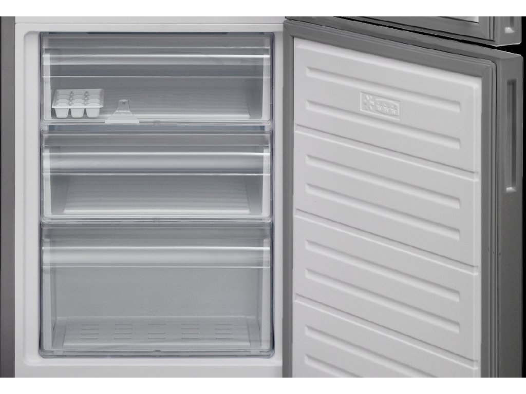 Kombinovaná chladnička s mrazákem dole; Nerezové barevné provedení; Celkový užitný objem: 268 l; Možnost změny směru otevírání dveří; LED vnitřní osvětlení; Mechanické ovládání; Rychlé mrazení; Klimatická třída SN-ST; Energetická třída D; Roční spotřeba energie 177 kWh; Hlučnost: 38 dB(A); Hmotnost: 49 kg; Rozměry (VxŠxH): 170 x 54 x 59,5 cm