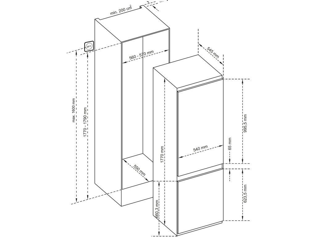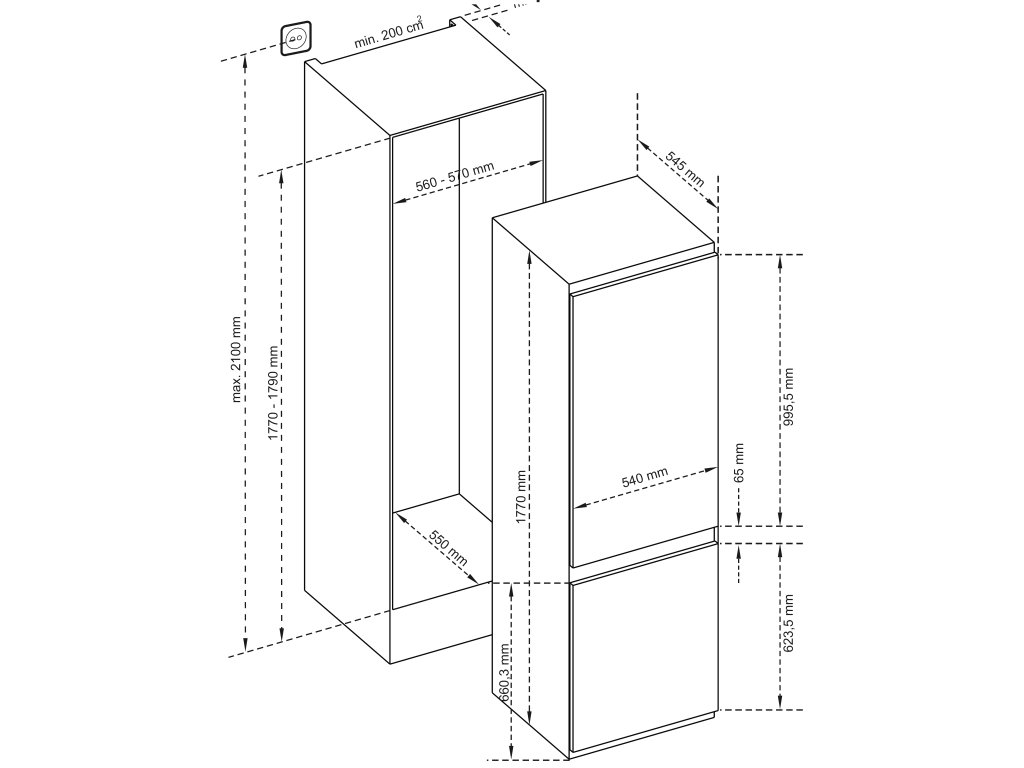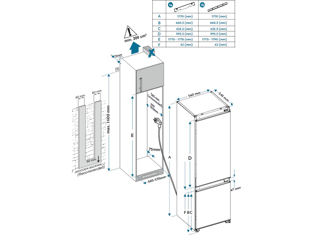 - Vestavná kombinovaná chladnička s mrazákem dole
