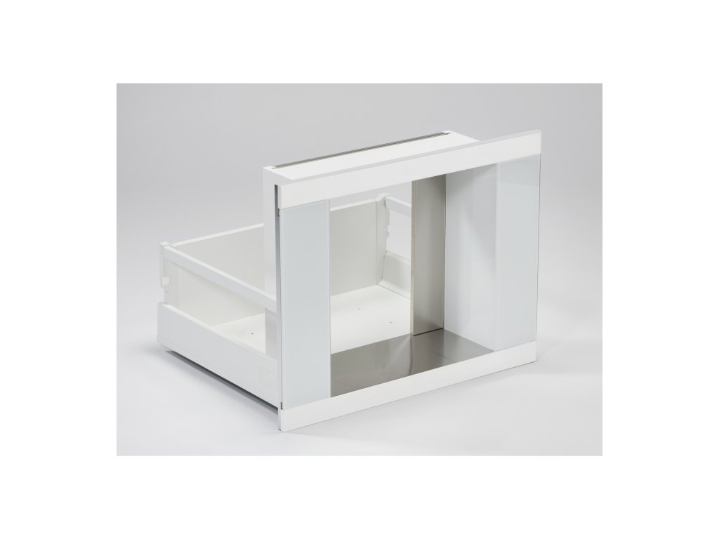 - Kombinace bíle lakovaný nerez + bílé sklo.