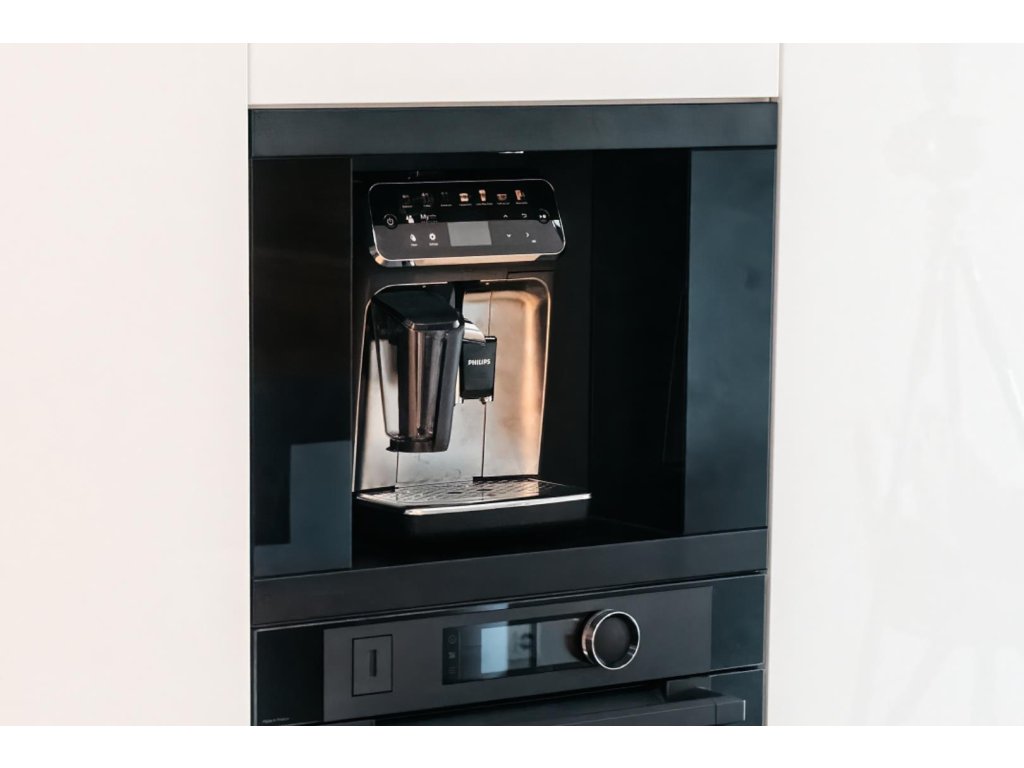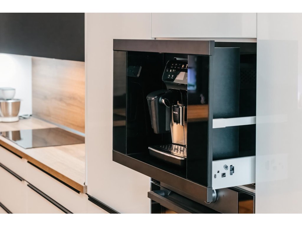 - Vestavná schránka s teleskopickým výsuvem pro volně stojící kávovary.