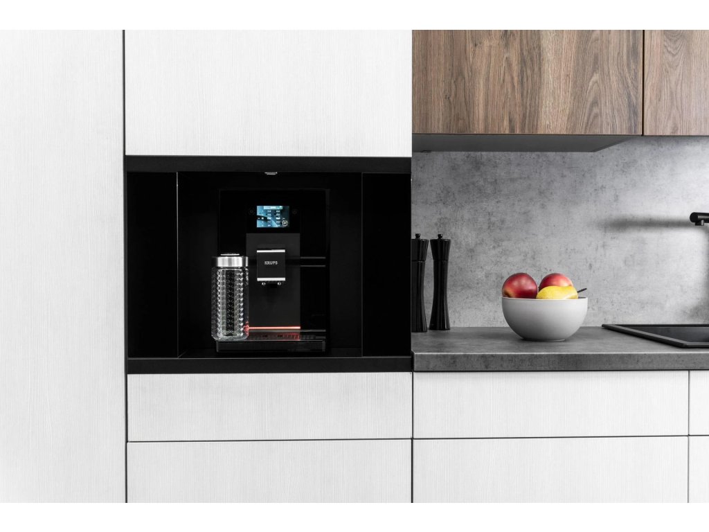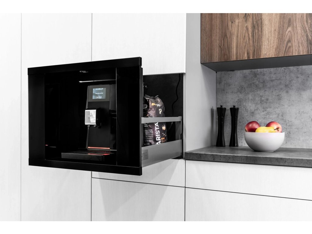 - Vestavná schránka s teleskopickým výsuvem pro volně stojící kávovary.
