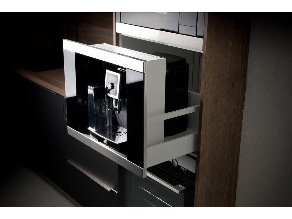 - Vestavná schránka s teleskopickým výsuvem pro volně stojící kávovary.