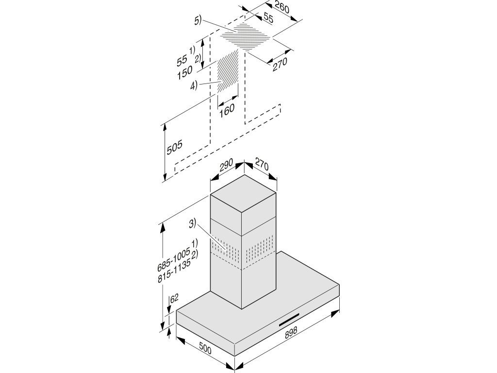 | Celková výška odsavače při cirkulaci v mm, minimum: | 815 |