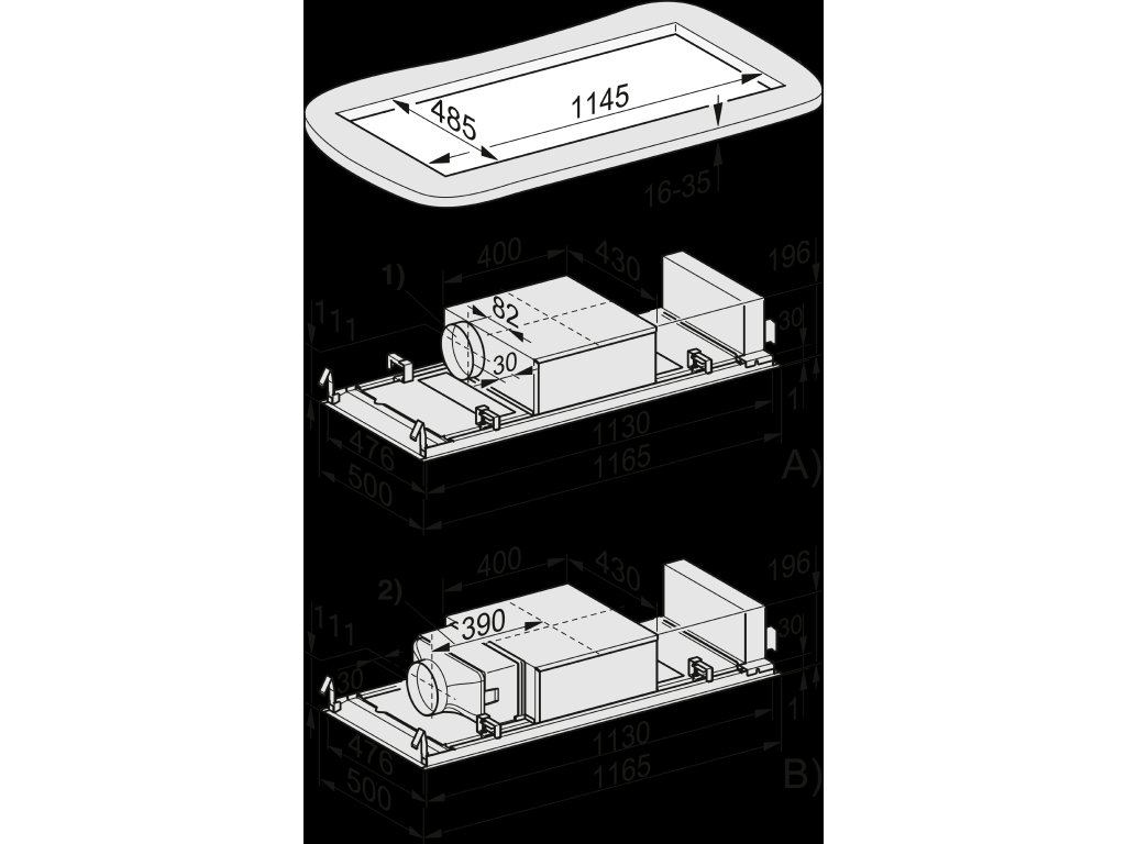 | Celková výška odsavače při cirkulaci v mm, minimum: | 196 |