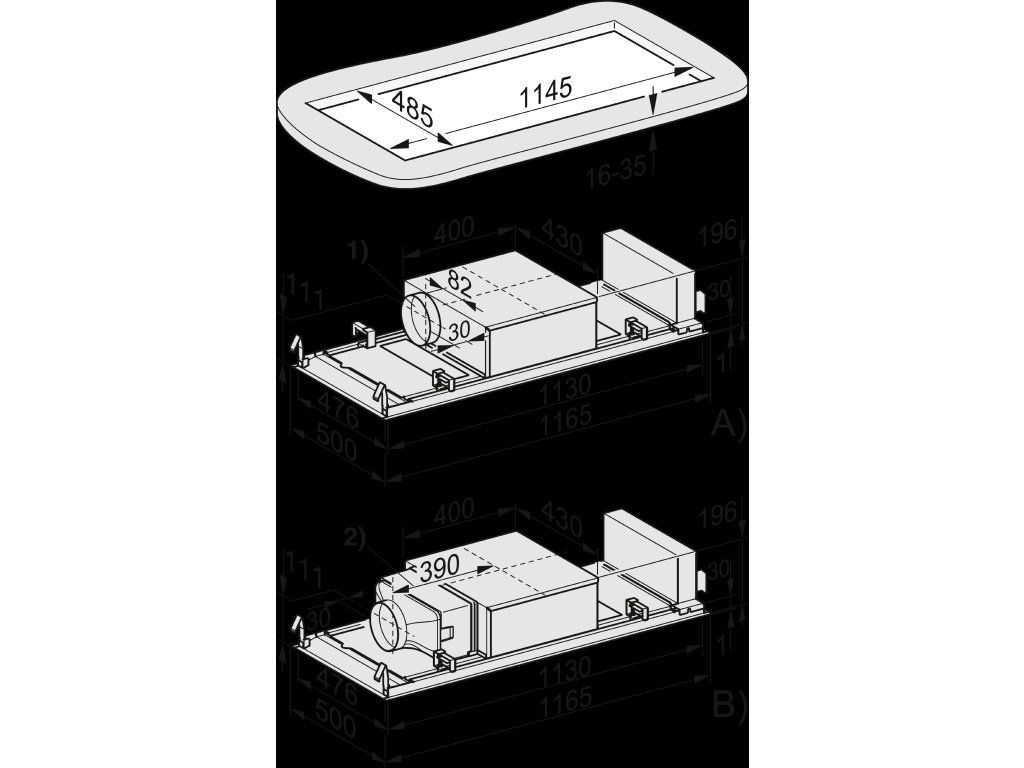 | Šířka těla odsavače v mm: | 1165 |