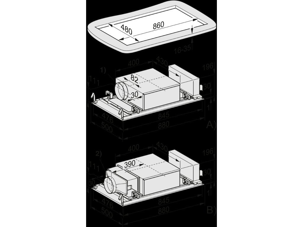 | Celková výška odsavače při cirkulaci v mm, minimum: | 196 |