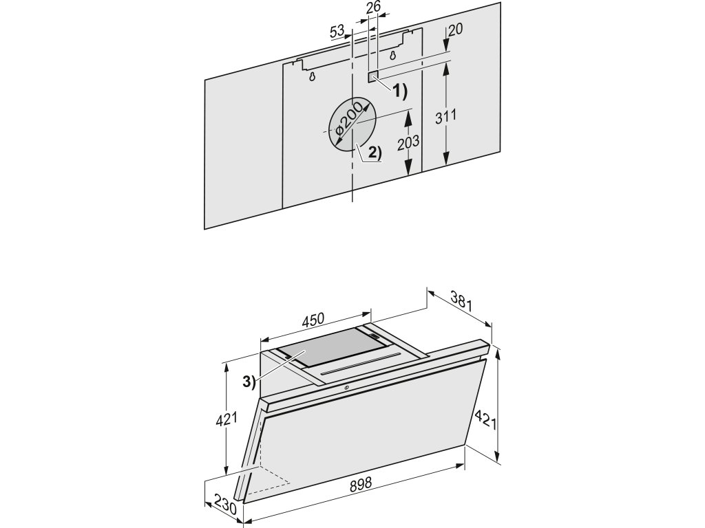| Celková výška odsavače při odtahu a externím provedení v mm, minimum: | 830 |