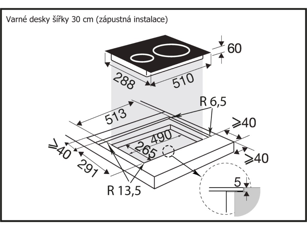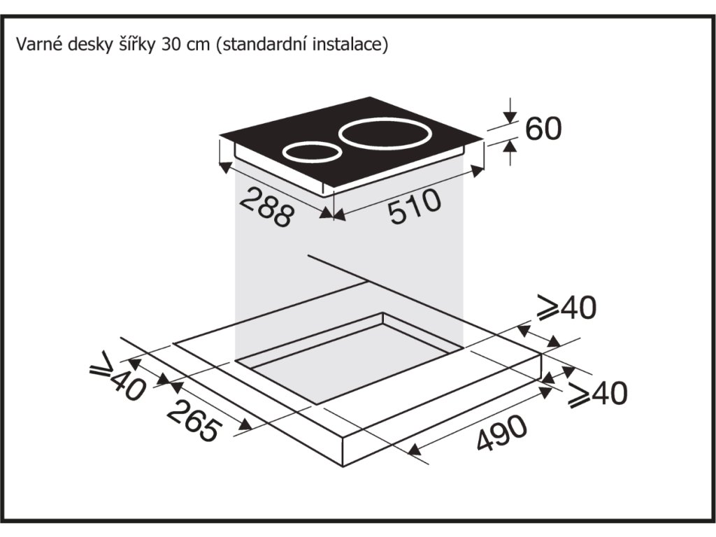 Možnost zapuštění varné desky do pracovní desky: | Ano |
