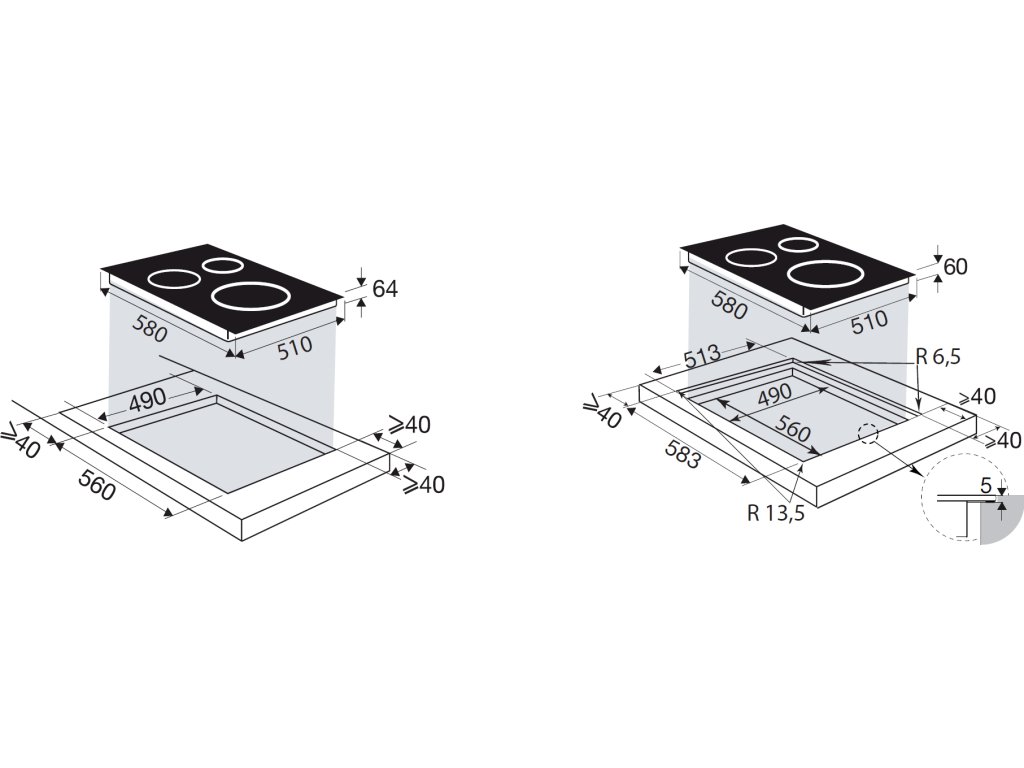 | Rozměry spotřebiče pod pracovní deskou (V x Š x H): | 5,6 x 55,8 x 48,8 |
