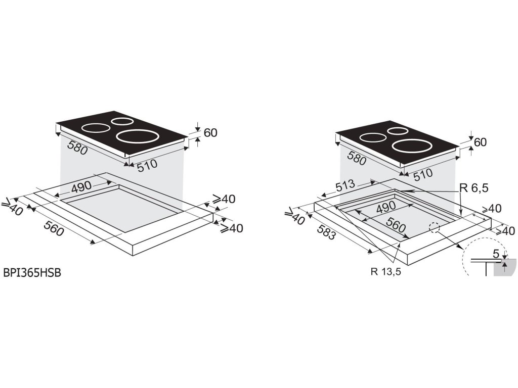 | Rozměry spotřebiče pod pracovní deskou (V x Š x H): | 5,6 x 55,8 x 48,8 |