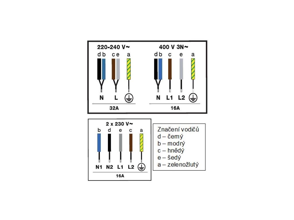 | Elektrické připojení: | 400 V / 50 Hz / 2 x 16 A |
