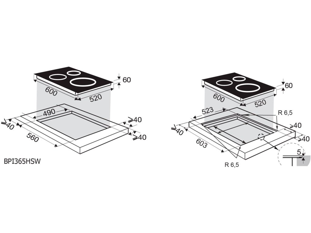 Možnost zapuštění varné desky do pracovní desky: | Ano |