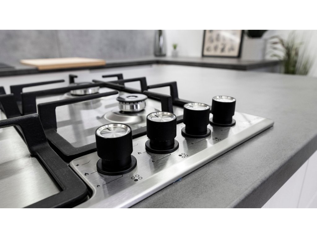 Varná deska Kluge KPG6000X je vybavena automatickým zapalováním hořáků v ovládacích knoflících, které značně usnadňuje její používání. Díky funkci Gas Stop je zajištěna vysoká úroveň bezpečnosti, protože v případě náhodného zhasnutí plamene dojde k automatickému odpojení plynu.