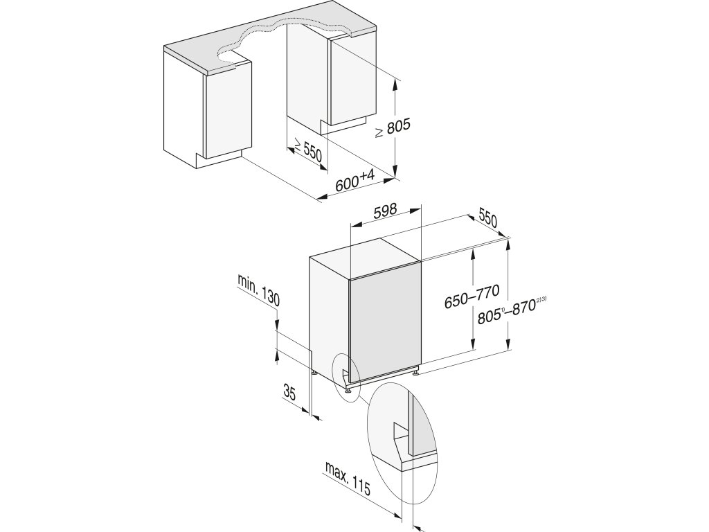 | Minimální výška výklenku v mm: | 805 |