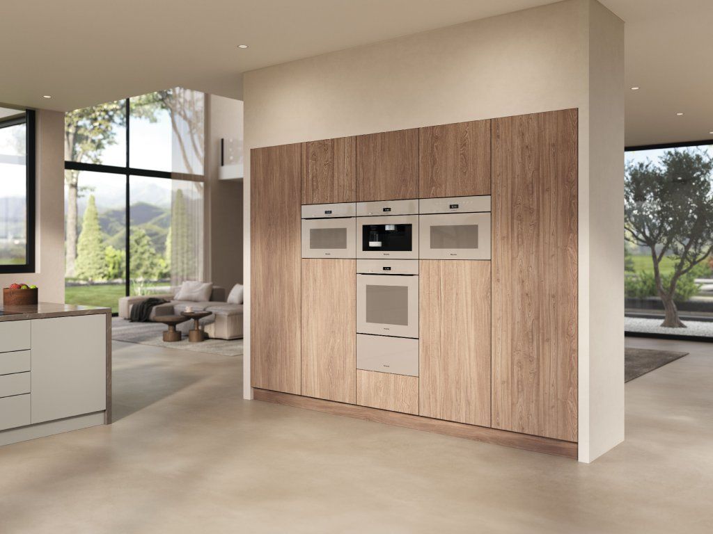 H 7440 BMX Perleťová béžová Kompaktní pečicí trouba s mikrovlnou bez rukojeti