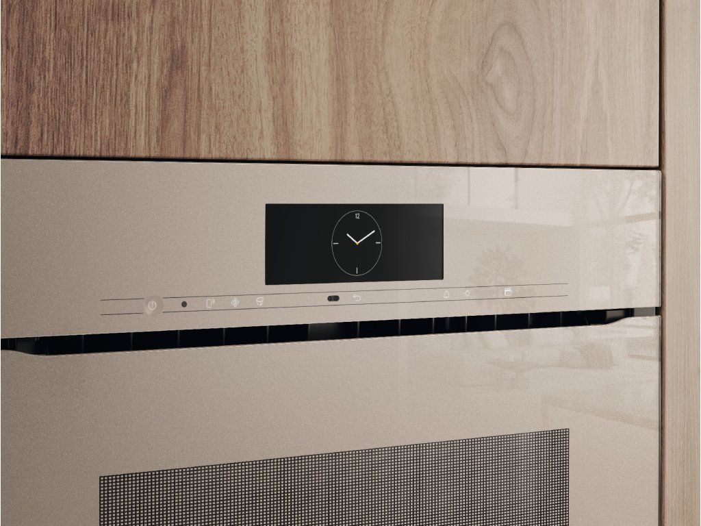H 7840 BMX Perleťová béžová Kompaktní pečicí trouba s mikrovlnou bez rukojeti