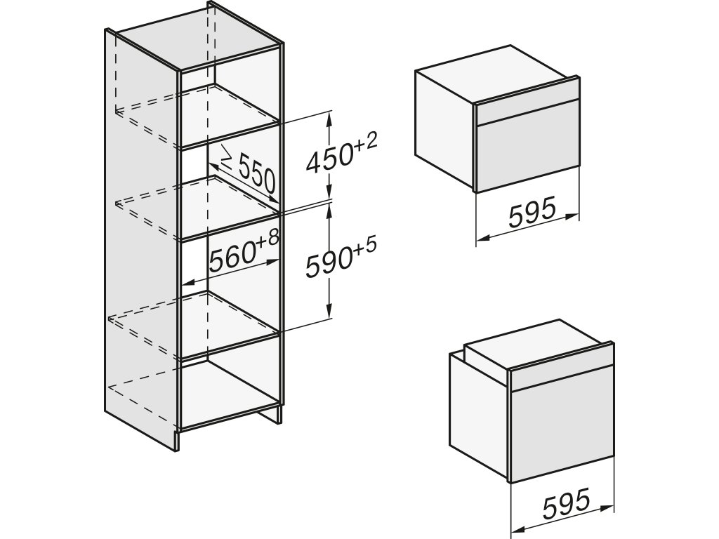 | Rozměry výklenku (š x v x h) v mm: | 560-568 x 590-595 x 550 |