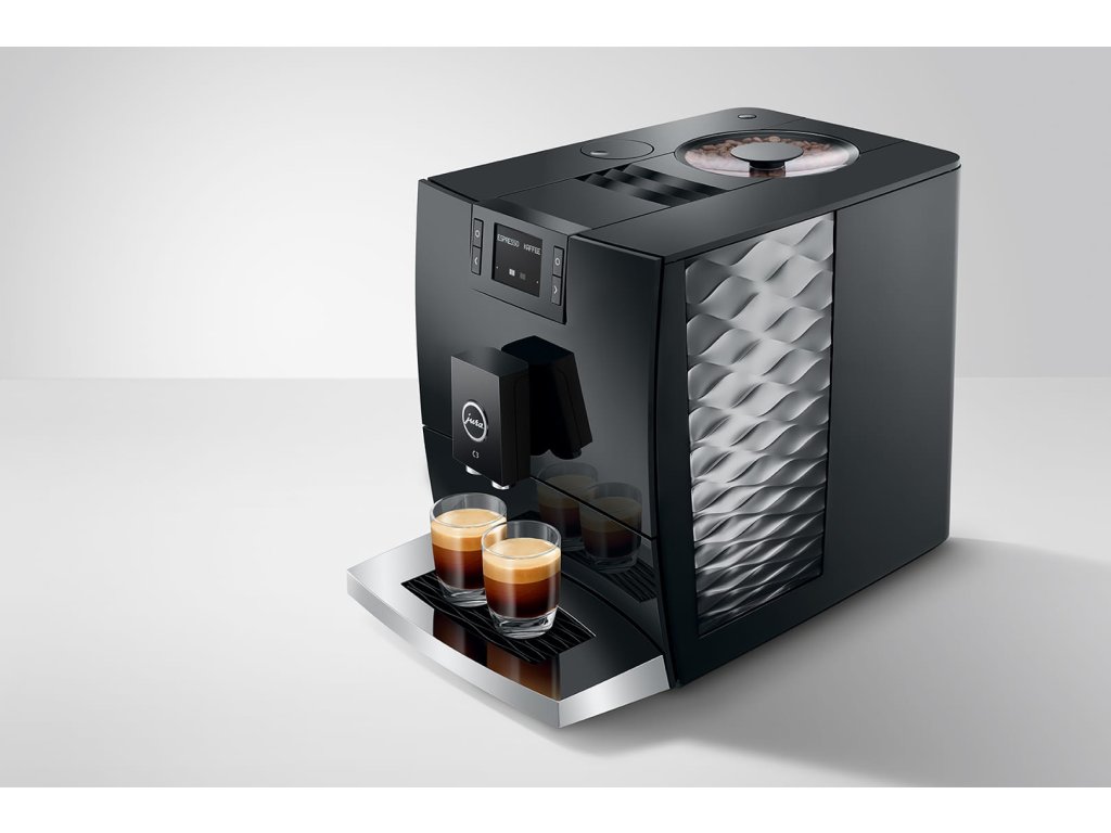 Model C3 charakterizuje elegantní a nadčasový zvlněný design inspirovaný prémiovou třídou: Zakřivené struktury tvarují nádrž na vodu a zdůrazňují chromovaný podstavec pro šálky. Konvexně-konkávní přední část přebírá křivky vln a shrnuje řeč designu do harmonického celku. Svou čistou estetikou, kreativní jednoduchostí a kompaktním formátem nadchne automatický kávovar typu „Pure Coffee“ každého, kdo miluje design a speciality z černé kávy.