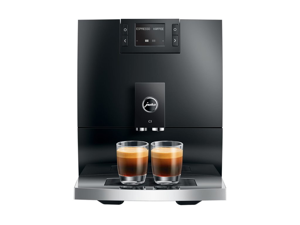 Kávovar JURA C3 se mistrovsky zaměřuje na speciality z černé kávy. Díky technologiím, jako je pulzní extrakční proces (P.E.P.®) a spařovací jednotka Full-Size, umí vykouzlit ze svých kávových specialit charakter a rozmanitost aroma. Excelentní přípravu kávy završuje stupeň mletí, který lze zvolit v sedmi úrovních od jemného po intenzivní. Díky funkci dvou šálků společným chvilkám u kávy již nic nestojí v cestě – požadovaná specialita se do šálků dostane ve dvou cyklech.