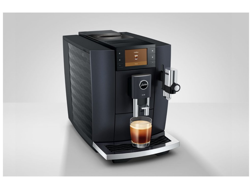 Kávovar JURA E8 září stylem a díky své šířce 27 cm působí i v menších kuchyních impozantním dojmem, a to jak svým designem, tak zážitkem z kávy. K dostání je v tomto barevném provedení Cosmic Black nebo ve stříbrném provedení - JURA E8 Midnight Silver.