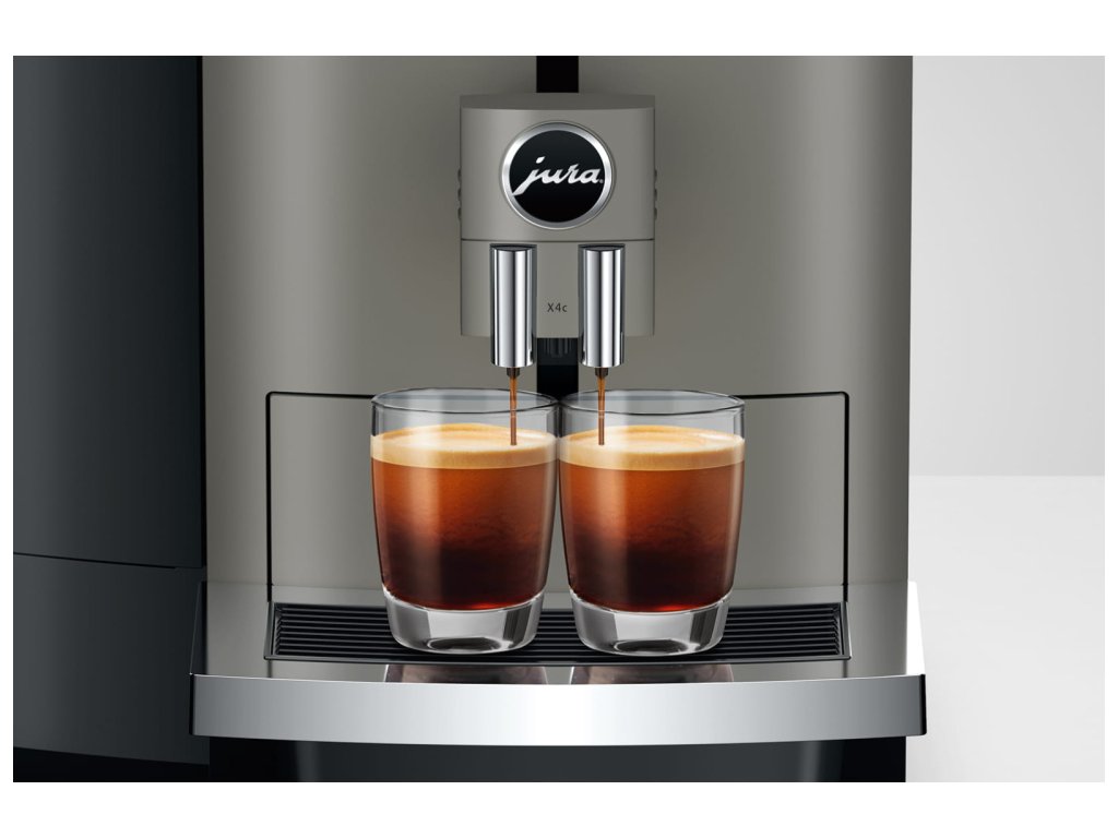 JURA X4c nabízí nesrovnatelný požitek z kávy. Kávová zrna jsou pomleta mlýnkem Professional Aroma Grinder (P.A.G.2), který kombinuje tři inovativní procesy přípravy kávy JURA. Díky funkci One-Touch Lungo jsou kávy americano a lungo aromatické a mají charakteristickou chuť. Oblíbená káva těží z technologie 3D spařování, zatímco espresso má silnou a vyváženou chuť díky procesu pulzní extrakce (P.E.P. ).®