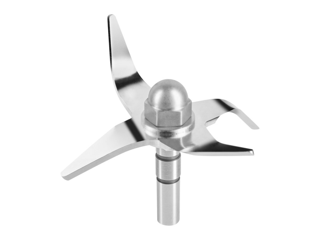 Naostření a přesný úhel nože optimalizuje výkon a mixování. 3 mm silný nůž z tvrzené nerezové oceli mixuje pod 4 různými úhly. Lze mýt v myčce na nádobí.