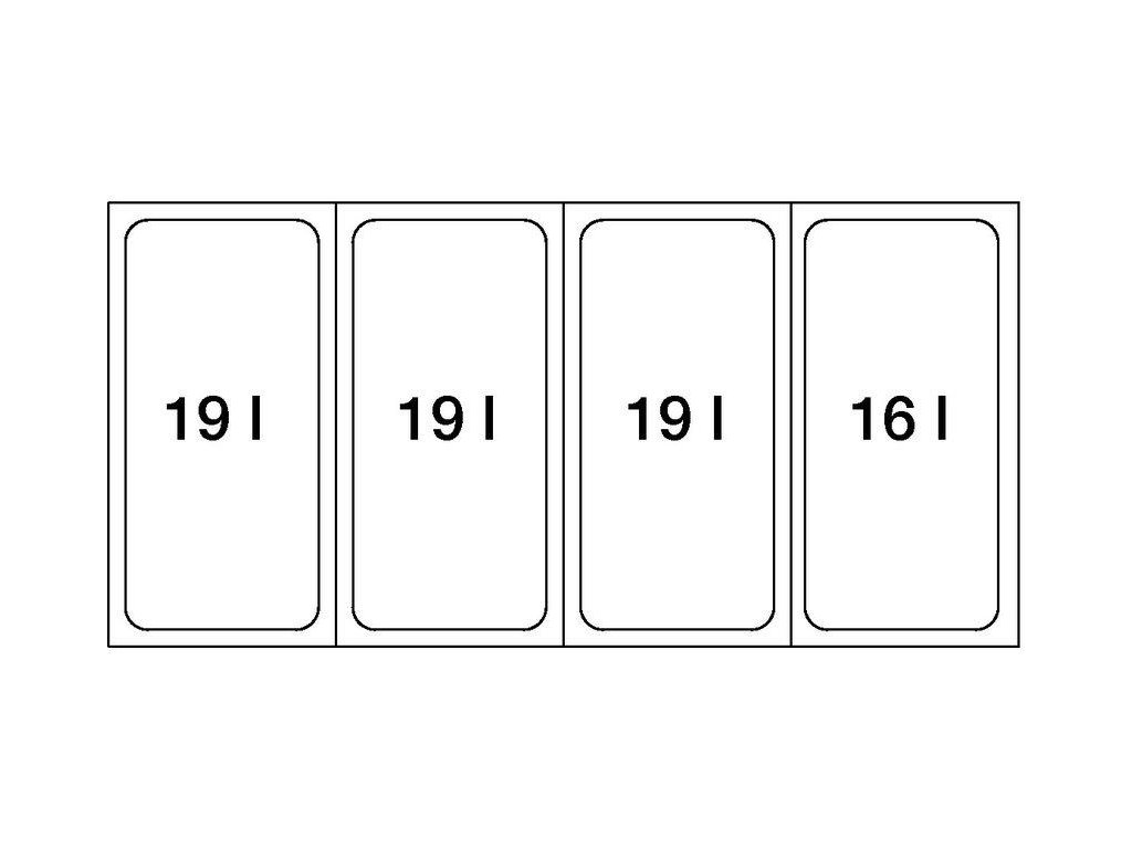 - Maximální výška obruby zásuvky 265 mm nad dnem zásuvek