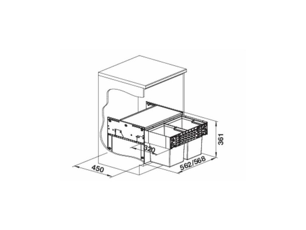 - Obsah balení: rám s plným výsuvem a krytem, plastové nádoby, montážní příslušenství.