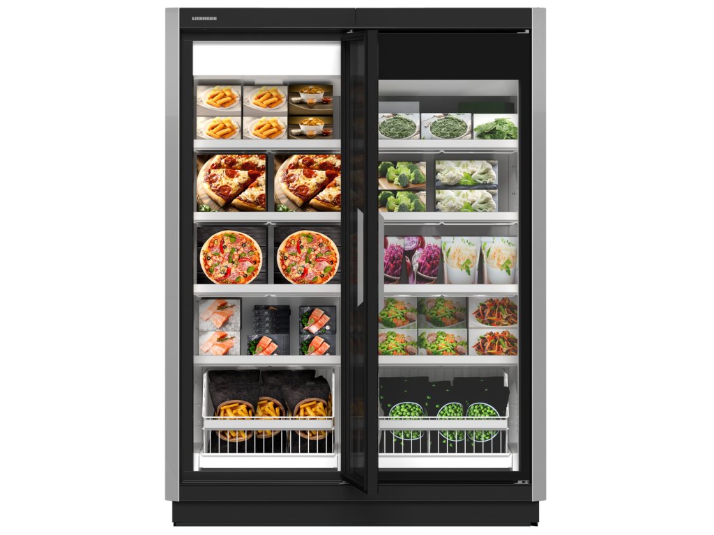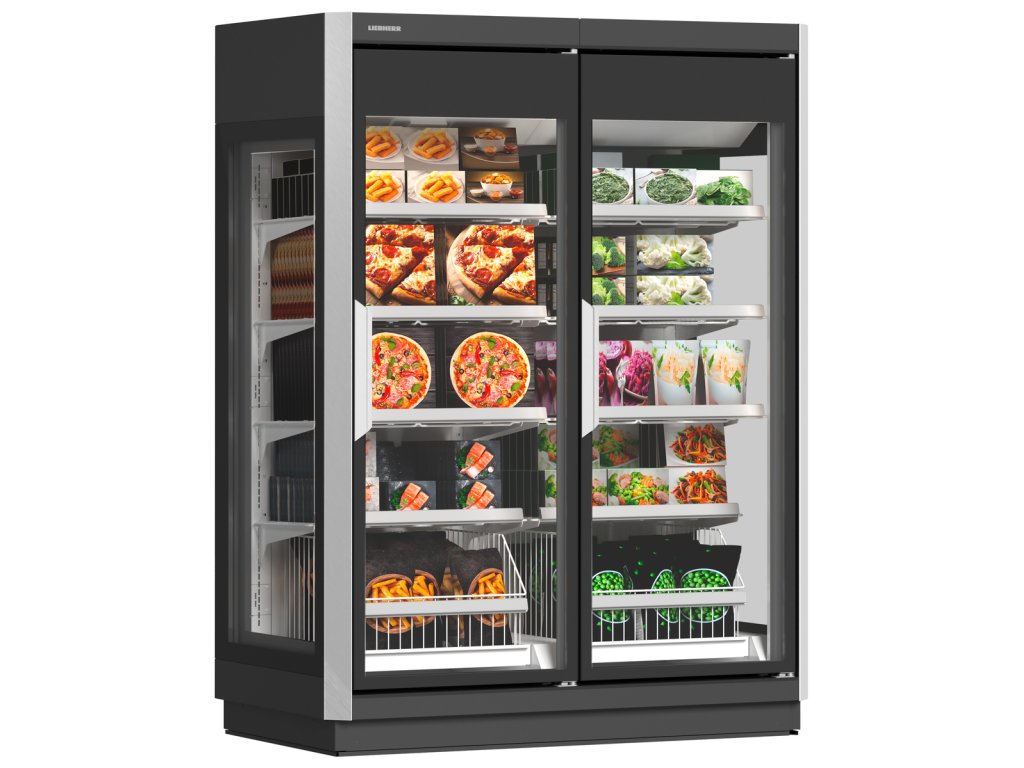 Do mrazničky s plně prosklenými dveřmi lze ideálně umístit každý produkt. K atraktivní prezentaci menších produktů lze využít menší koš, který se umístí nad ten velký. Navíc tak bude zajištěn dostatek prostoru pro produkty v sáčcích.