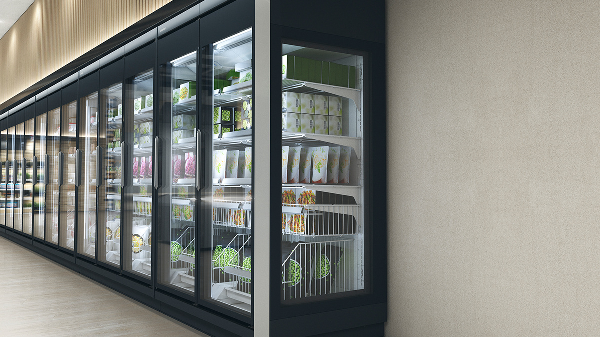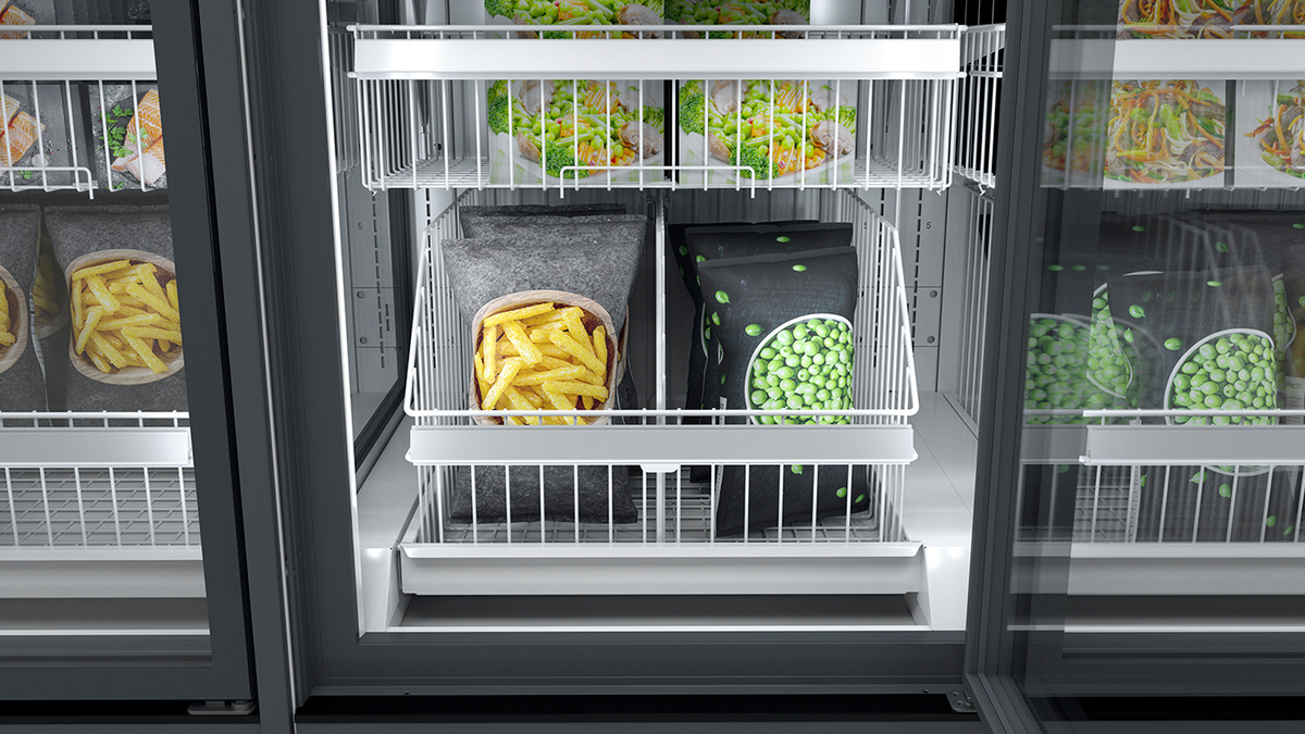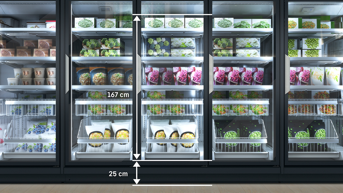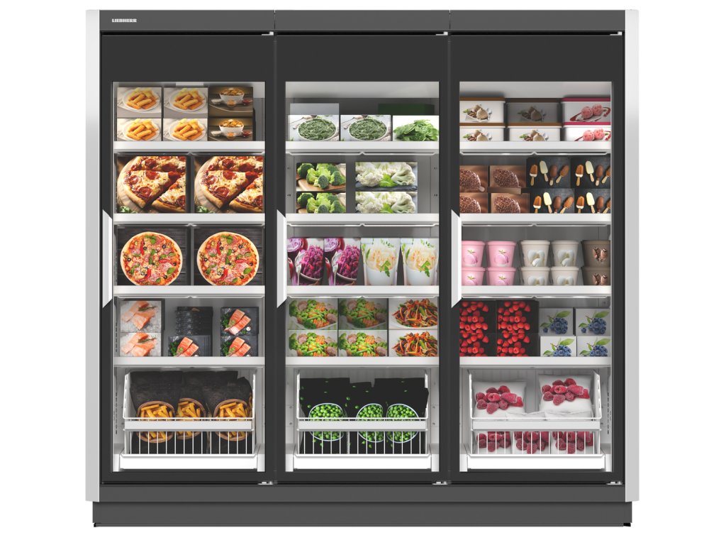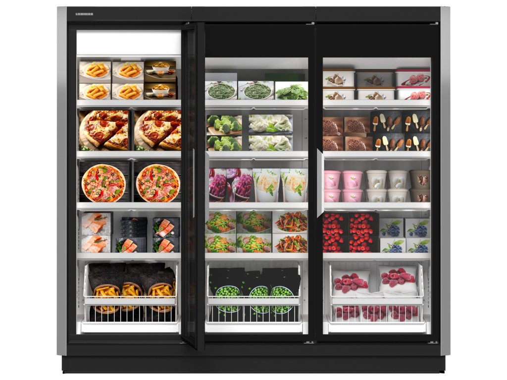 Do mrazničky s plně prosklenými dveřmi lze ideálně umístit každý produkt. K atraktivní prezentaci menších produktů lze využít menší koš, který se umístí nad ten velký. Navíc tak bude zajištěn dostatek prostoru pro produkty v sáčcích.