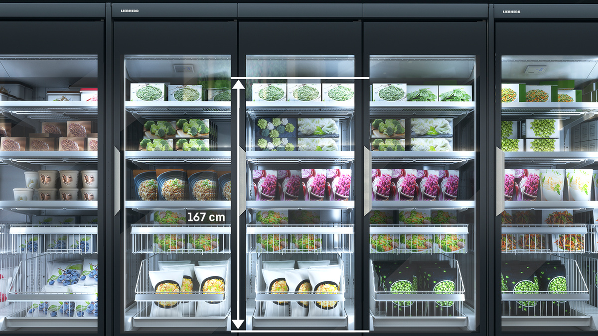 Klesají Vám prodeje kvůli tomu, že zákazníci nedosáhnou na zboží? S touto mrazničkou s plně prosklenými dveřmi se Vám to nestane. Interiér o užitečné výšce 1,67 m nabízí dostatek prostoru a zároveň také pohodlný přístup do všech oddílů.