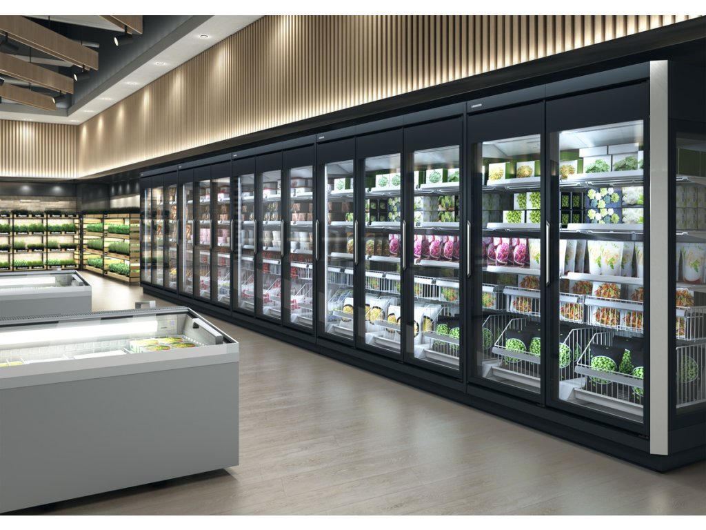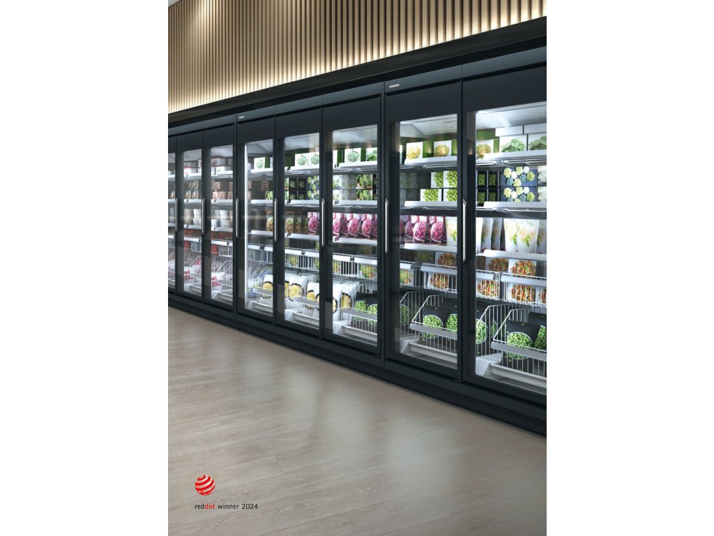 Mraznička s plně prosklenými dveřmi odpovídá požadavkům normy EN 23953, což znamená, že splňuje standardy ohledně výkonu, energie a zachování stálé teploty pro bezpečné uložení potravin.