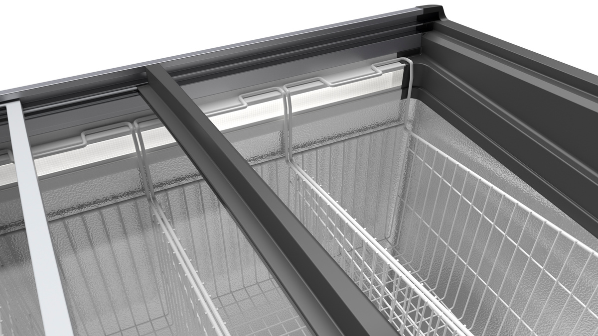 Díky úspornému LED osvětlení vnitřního prostoru jsou uskladněné výrobky prezentovány ideálním způsobem