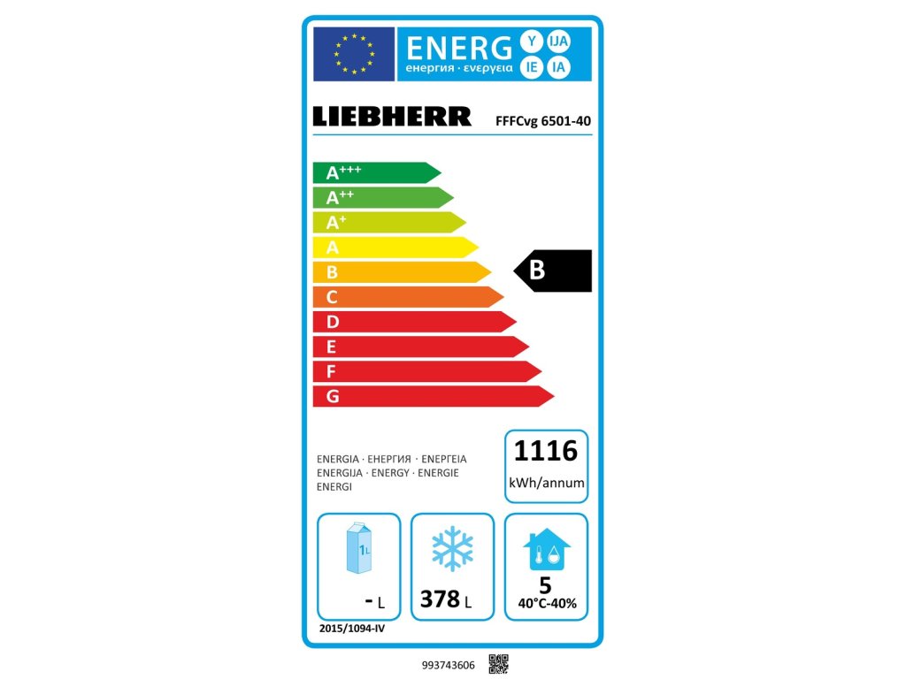 Přehled o energetické účinnosti: Z energetického štítku se dozvíte, jak hospodárné profesionální spotřebiče Liebherr jsou. Nízká spotřeba energie se navíc projeví nízkými celkovými provozními náklady.