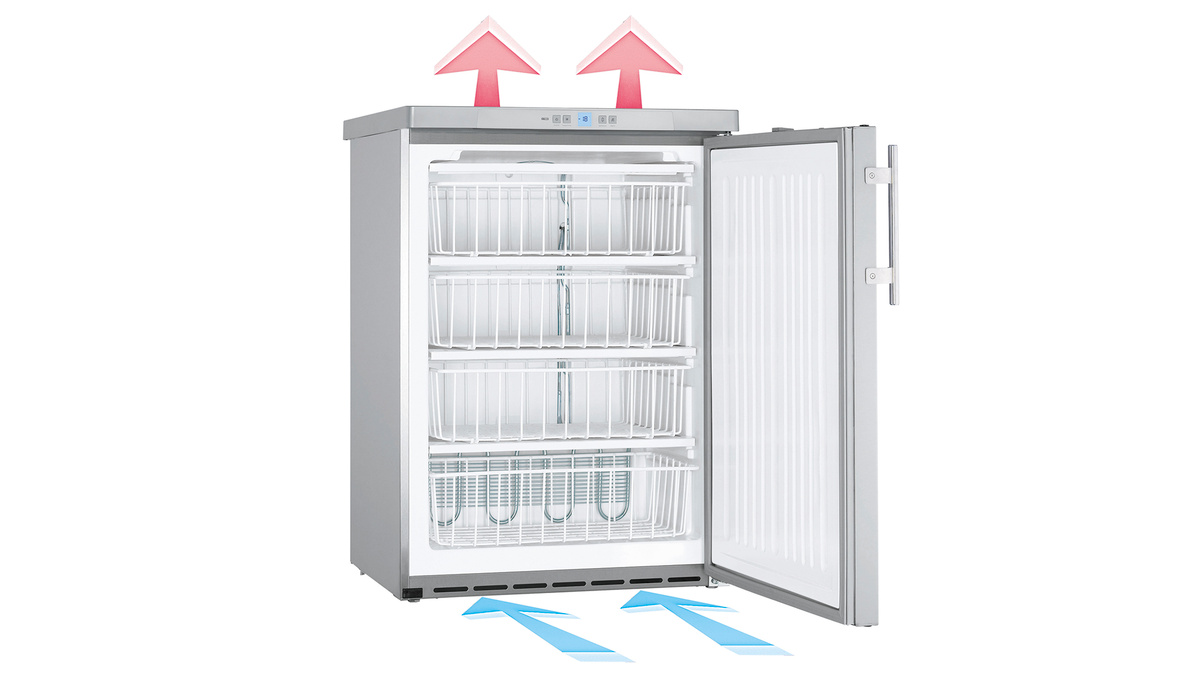 Několik modelů Liebherr lze integrovat pod pracovní plochu, kdy je potřeba zajistit ventilační mřížku (min. 200 cm²) v zadní části pracovní plochy, aby bylo zajištěno dostatečně odvětrávání spotřebiče. Pokud ventilační mřížka v pracovní desce chybí, výklenek pod plochou musí mít výšku alespoň 860 mm, aby byl zajištěn rozptyl vzduchu dopředu. Modely pod pracovní plochu nabízejí kompaktní řešení, které se obzvlášť hodí v malých prostorech.