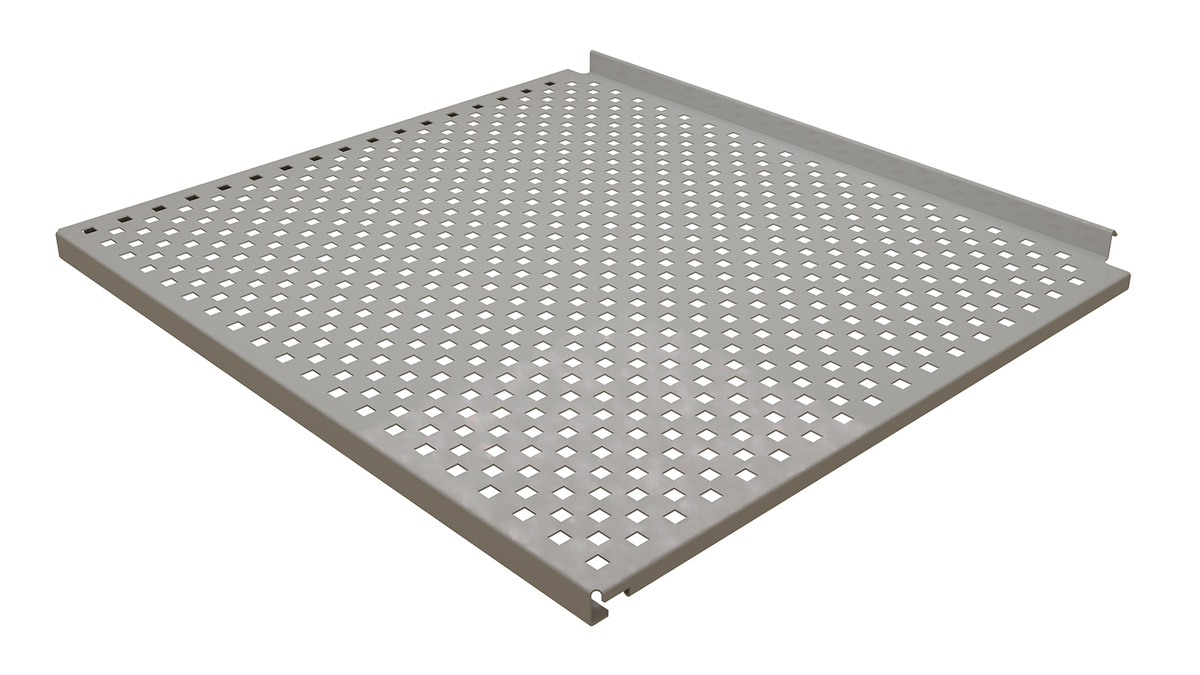 Volitelné příslušenství pro bezpečné skladování vzorků, činidel atd.: Děrovaná police zajišťuje, že i ty nejmenší nádoby s nerovným povrchem lze uložit bezpečně a s optimální cirkulací vzduchu. Pro lepší stabilitu i z hlediska skladovací teploty.