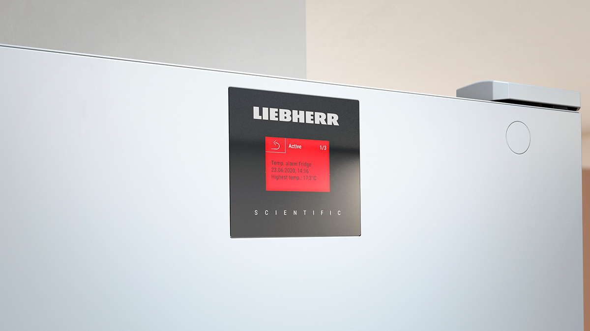 Pokud dojde k alarmu teploty, funkce Liebherr SmartLock automaticky uzamkne dveře spotřebiče, aby se produkty s přerušeným řetězcem chlazení náhodně nedostaly do oběhu. Znovu odemknout zámek mohou pouze oprávněné osoby, které rozhodnou o stavu skladovaných látek.