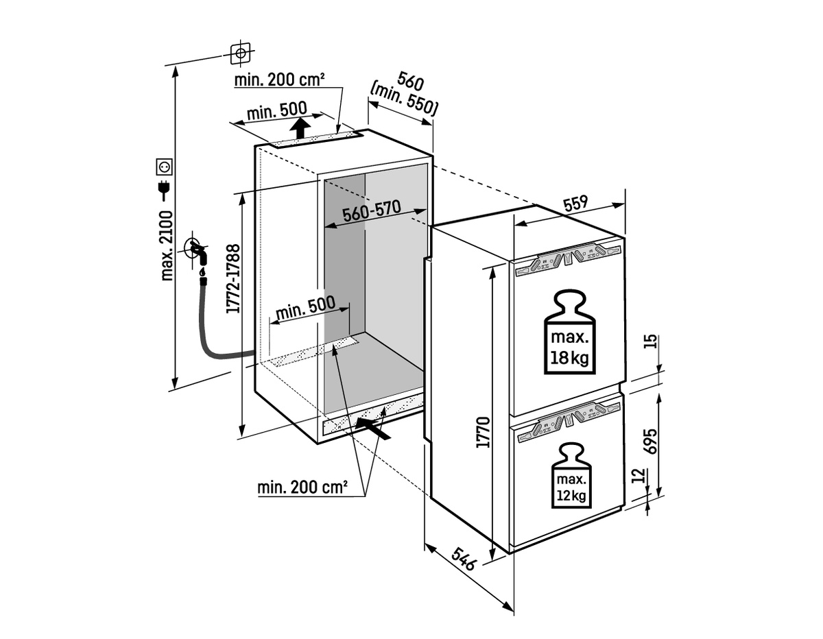 | Skupina výrobku: | Integrovatelná kombinovaná chladnička s mrazničkou s EasyFresh a NoFrost |