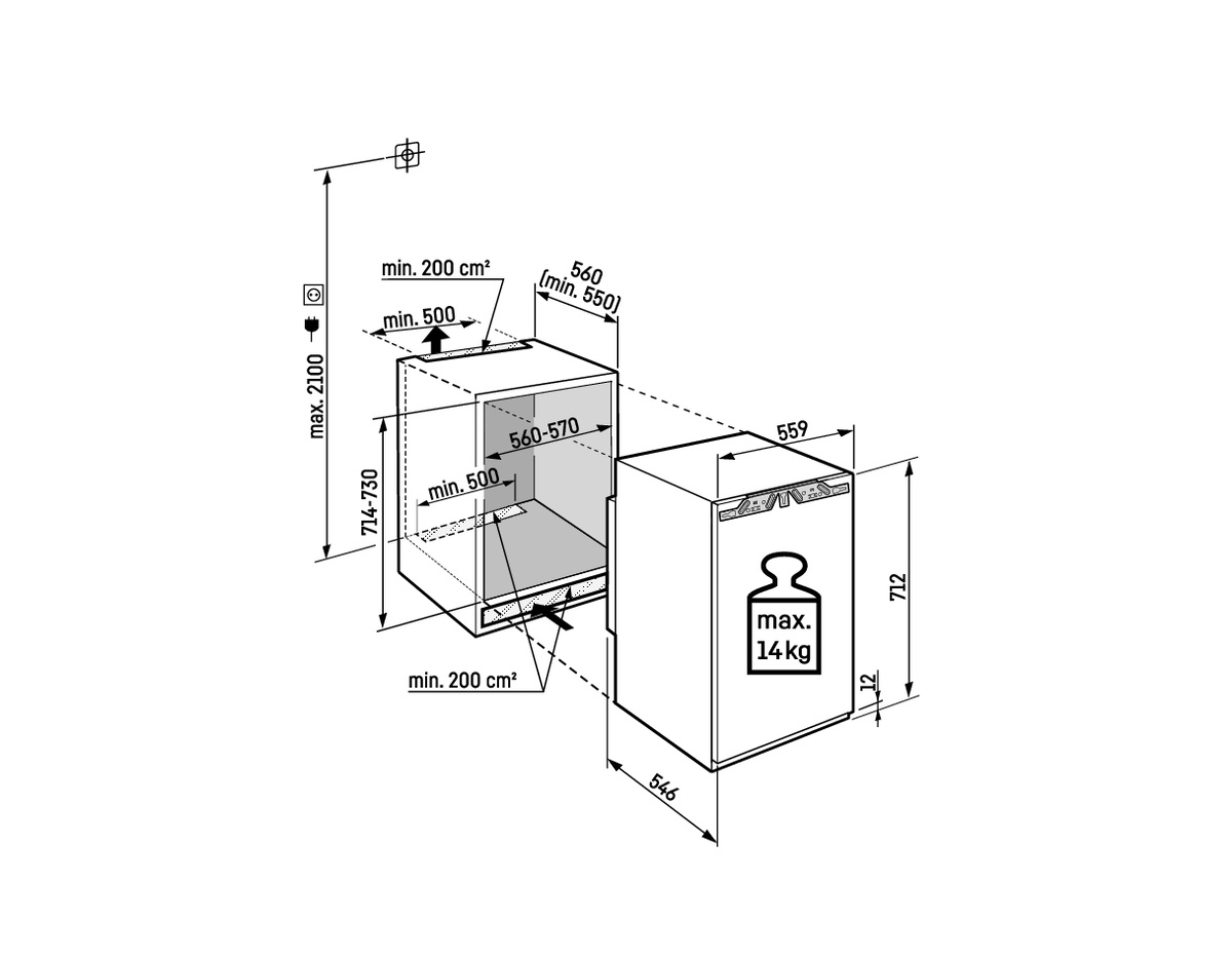 | Max. hmotnost dveří kuchyňské linky: | 14 |