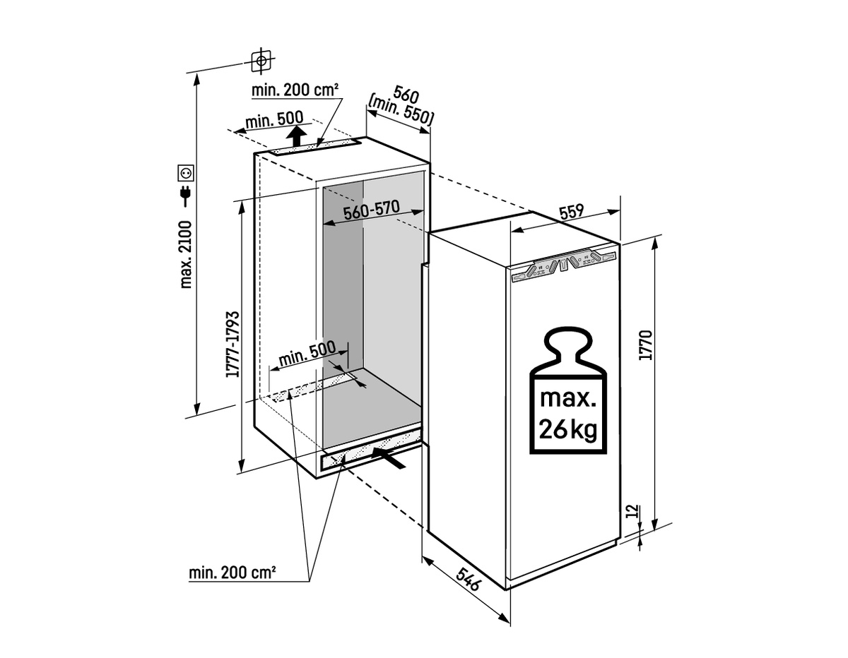 | Max. hmotnost dveří kuchyňské linky: | 26 |