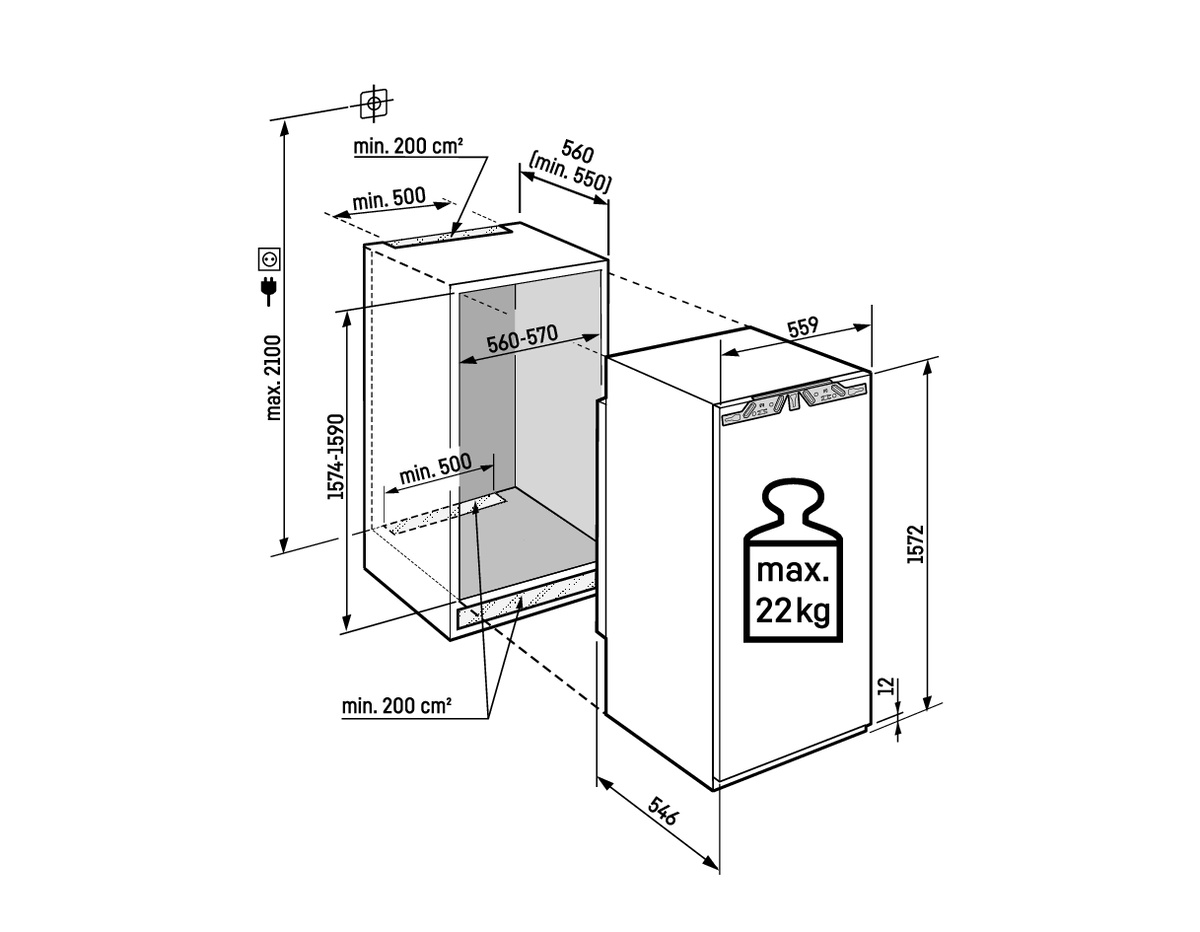 | Max. hmotnost dveří kuchyňské linky: | 22 |
