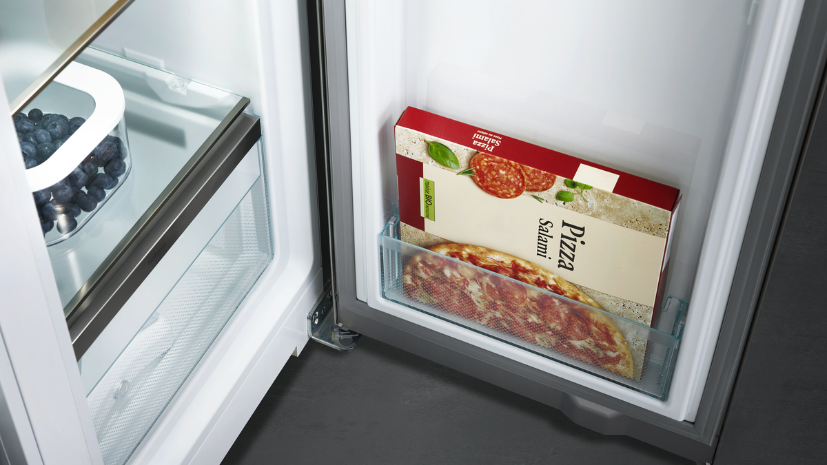 S vaším spotřebičem Liebherr můžete maximálně využít každý centimetr – dokonce i dveře mrazničky. Praktické dveřní police v mrazicím oddíle lze snadno umístit buď nahoru, nebo na dno mrazicího oddílu. Je tu dokonce i místo na krabice s pizzou Díky průhlednému provedení a zabudovanému osvětlení budete mít vždy jasný přehled o tom, co se nachází uvnitř.