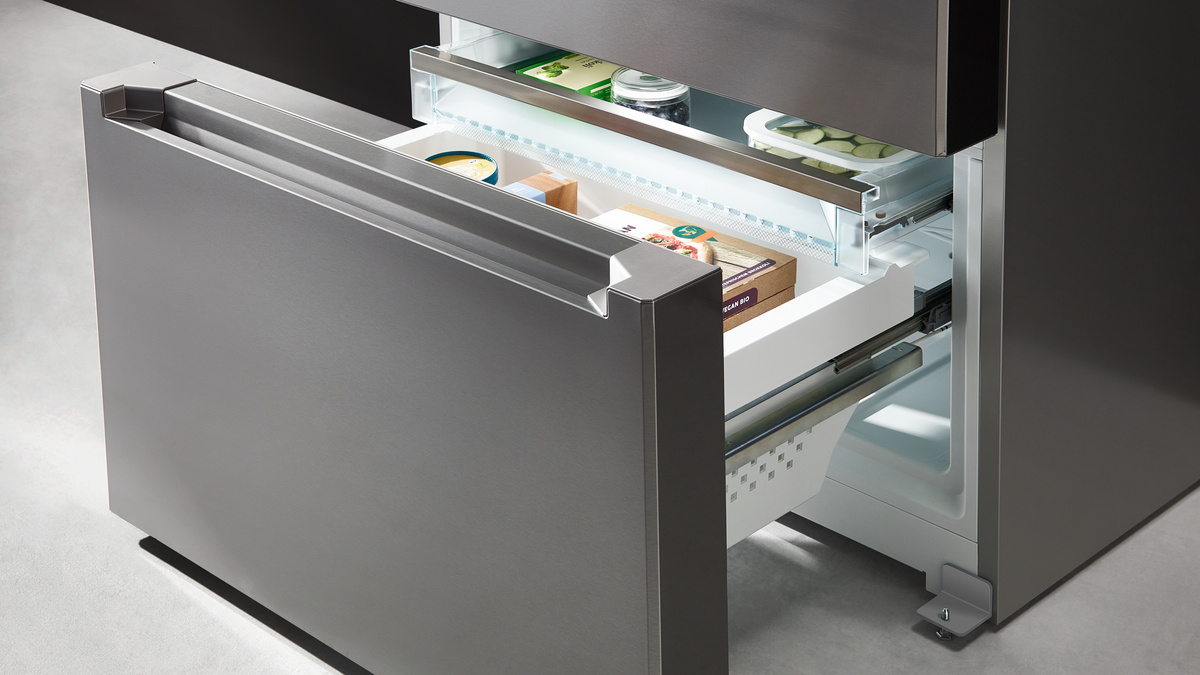 Máte rádi minimalistický vzhled vašeho domova? Pak vás ohromí elegantní profil vašeho spotřebiče Liebherr. Svými horizontálními zapuštěnými madly po celé délce s ergonomickým designem na obou dveřích a zásuvkách plynule splyne s vaším moderním stylem bez úchytek. Díky zapuštěným madlům je navíc otevírání spotřebiče hračka.