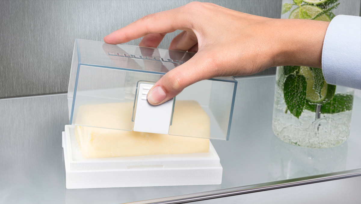 Vybavení vašeho spotřebiče Liebherr je dvojnásob praktické: Nejen, že zjednodušují každodenní používání, ale také se velmi snadno čistí. Musí se dóza na máslo, FlexSystem nebo miska na kostky ledu čistit? Jednoduše je pohodlně vložte do myčky. Budete tak mít čas i na jiné věci.