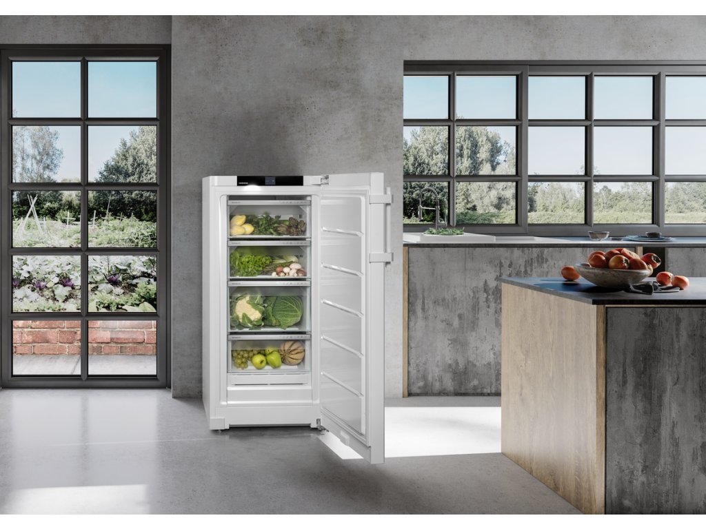 Dveřní alarm spotřebiče Liebherr zajistí, že neplýtváte energií a potraviny se nezkazí: pokud dveře spotřebiče zůstanou otevřené příliš dlouho, spustí se alarm – blikající světlo a výstražný tón. Sami si rozhodnete, co znamená „příliš dlouho“: podle nastavení se dveřní alarm spustí po jedné, dvou, nebo třech minutách.